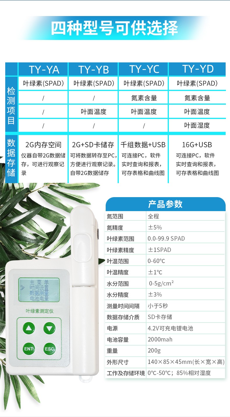 TY-YA植物葉綠素儀可以即時(shí)測(cè)量植物的葉綠素相對(duì)含量(單位SPAD)或“綠色程度”從而可以了解植物真實(shí)的硝基需求量并且?guī)椭私馔寥老趸娜狈Τ潭然蚴欠襁^(guò)多地施加了氮肥。您可以通過(guò)這種儀器來(lái)增加氮肥的利用率,并可保護(hù)環(huán)境(防止施加過(guò)多的氮肥而使環(huán)境特別是水源受到污染)。